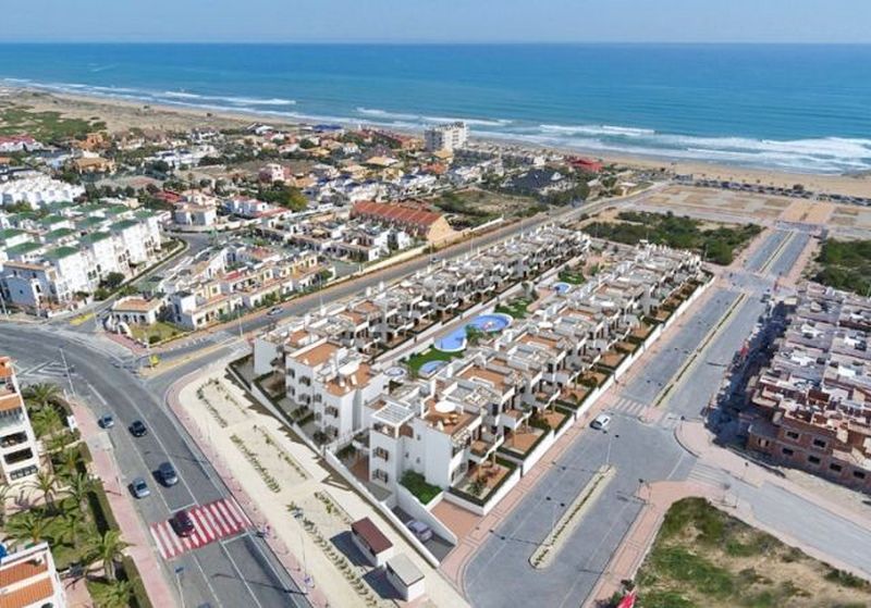 Апартаменты  в новом жилом комплексе  рядом с пляжем на Коста Бланка юг, провинция Аликанте.  Возможность купить новостройку под ключ по ценам застройщика.   Различные варианты квартир отличаются этажностью и количеством спален :   на первом этаже с садиком, на втором этаже с террасой на крыше,
