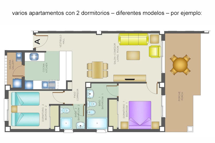 Предлагаются различные варианты планировки апартаментов, 2 или 3 спальни. Расширение, как правило, происходит путем замещения террасы на крыше или частного садика. Некоторые апартаменты, в основном пентхаусы, располагают прекрасным видом на море.