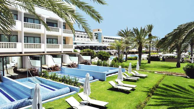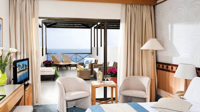 Абсолютно все номера имеют выход на балкон, откуда открывается роскошный вид на пляж и море. Среди других удобств: спутниковое телевидение, плазменные панели, телефон, радио, возможность подключения Wi-Fi, предоставления сейфа. К услугам проживающих фирменные халат и тапочки, фен, весы, холодильник, мини-бар. Номера оборудованы кондиционерами и центральным отоплением. Существует возможность заказа двойной кровати королевского размера, а также спальных мест на двух-трех человек.