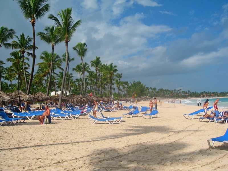Пляж отеля Байя Принцип 5*, Пунта Кана, Доминикана - достаточно широкий и просторный, здесь умещаются достаточное количество лежаков и зонтиков, а также площадки для пляжного волейбола и подвижных игр. В несколько сот метрах от берега коралловый риф оберегает пляж от океанских волн. С пляжа отеля Байа Принципе Пунто Кана 5 виден и остов торгового судна, некогда севшего на мель в этом месте.