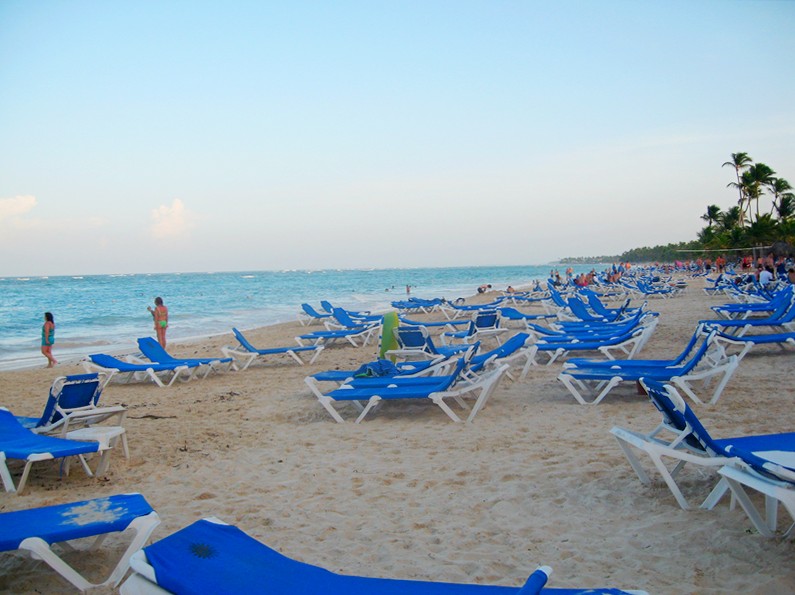 Пляж отеля Байя Принцип 5*, Пунта Кана, Доминикана - достаточно широкий и просторный, здесь умещаются достаточное количество лежаков и зонтиков, а также площадки для пляжного волейбола и подвижных игр.  В несколько сот метрах от берега коралловый риф оберегает пляж от океанских волн. С пляжа отеля Байа Принципе Пунто Кана 5 виден и остов торгового судна, некогда севшего на мель в этом месте.