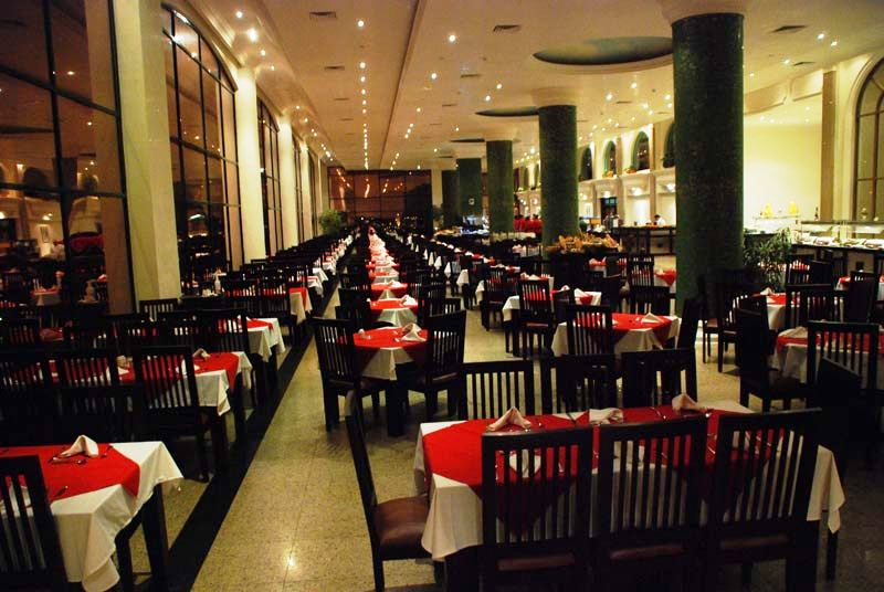 Отель работает по круглосуточной системе Роял AI. Несколько ресторанов а-ля-карте по предварительной записи, основной ресторан (шведский стол) бары, закусочные, кафетерий. Модный диско бар, стилизованный под планету Марс, работает таке же по системе «все включено2 до половины третьего ночи.