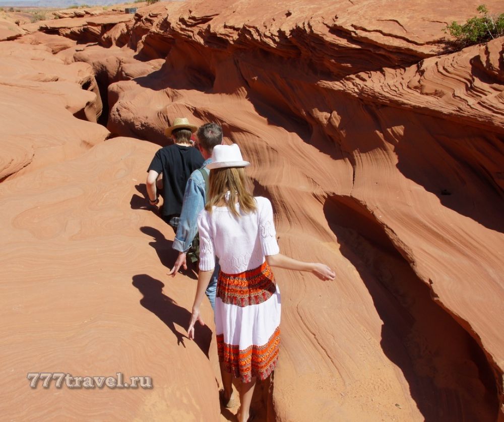Снаружи вход в каньон представляет собой узкую щель, поэтому найти его не так просто. Ориентиром служит деревянная будка индейцев-проводников и не очень яркий указатель на дороге.  Т.к. это место посещают обычно после осмотра Гранд Каньона (240 км по Аризоне), то и ищут, обычно, что-то более грандиозное. Однако, дух захватывает, только когда проникаешь внутрь. Для посещений лучше выбирать солнечные дни весной или осенью.