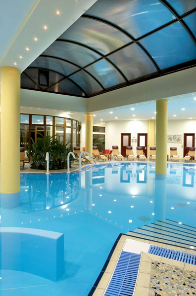 Итак, к вашим услугам шесть бассейнов под открытым небом, находящихся в окружении пышной зелени, декоративных водопадов и живописных пальмовых оазисов, а также подогреваемый пресный бассейн под накрытием. Поклонники активного времяпровождения могут сразиться в пинг-понг, бильярд, большой теннис, дартс, «порезвиться» на баскетбольной, футбольной или волейбольной площадках, попробовать себя в мини-гольфе, или записаться на занятия в тренажерном зале, расположенном в Талассо Спа Центре. Всю неделю напролет группа профессиональных аниматоров занимается развлечением гостей отеля, давая им мощнейший заряд позитивной энергетики. Множество спортивных соревнований, игр и конкурсов организовываются специально для тех посетителей, которые пребывают в постоянном поиске альтернатив пассивному отдыху и валянию на пляже. Ежевечерне в основном баре Atrium Palace Thalasso Spa гремят развлекательные шоу-программы и представления. Ну а тот, кто устал от шума и беготни, всегда может уединиться в джакузи, сауне, или расслабиться в умелых руках массажиста.
