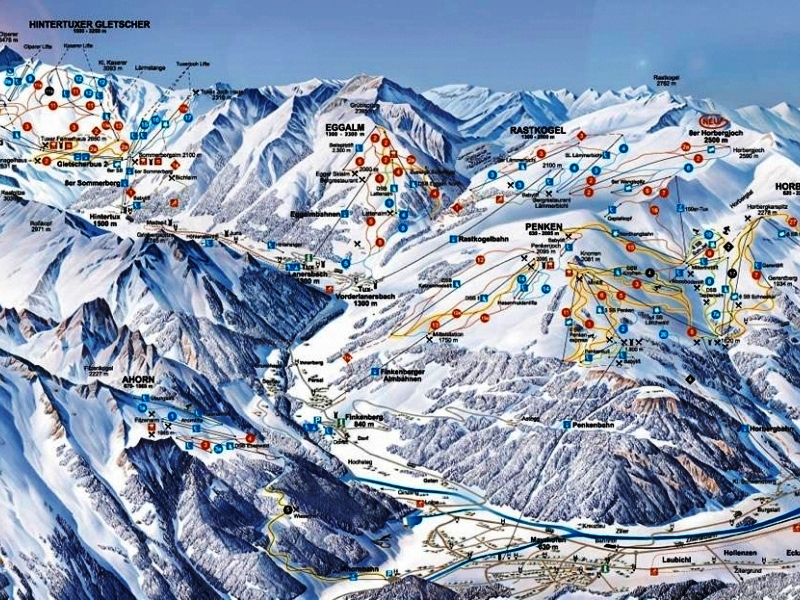 Схемы трасс на склонах и расположение подъемников можно изучить на «Майрхофен карта» в разделе фото.