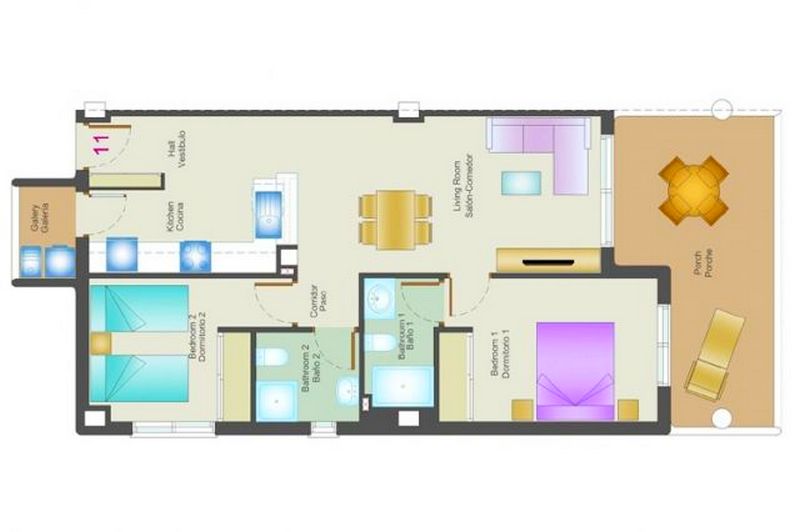 В каждой из этих квартир в новом жилом комплексе  Испании как минимум 2 ванные комнаты, удобная гостиная-столовая, укомплектованная кухня, кладовка, балкон или терраса. Квартиры на первом этаже имеют также собственный небольшой сад, а пентхаусы – оборудованную террасу.