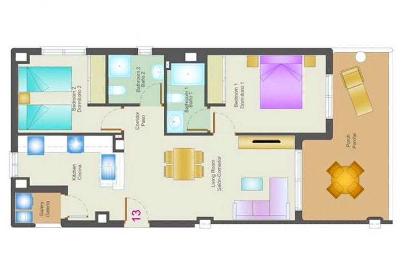 Предлагаются различные варианты планировки апартаментов, 2 или 3 спальни. Расширение, как правило, происходит путем замещения террасы на крыше или частного садика. Некоторые апартаменты, в основном пентхаусы, располагают прекрасным видом на море.