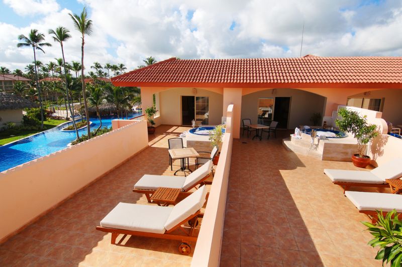 8 номеров Колониаль Junior Suite, находятся на 4-м этаже, терраса с джакузи и шезлонгами, джакузи в ванной комнате, площадь 49 м2, бутылка рома в подарок, Интернет платный;