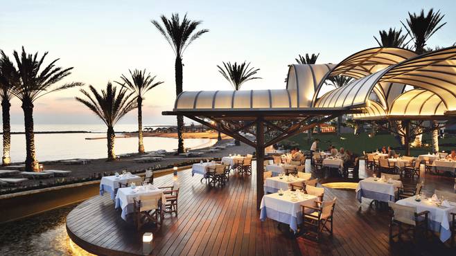 Основной ресторан отеля - Atrium. Здесь огромный выбор еды на шведский стол. Хорошо поужинать и отведать национальные блюда Кипра можно в ресторане Zephyr A-La-Cart. Легко подкрепиться в течение дня можно в ресторане Leda. В отеле находится и вечерний бар Nectar Cocktail Bar. У бассейна можно выпить освежающие напитки в Adonis Grill Bar.