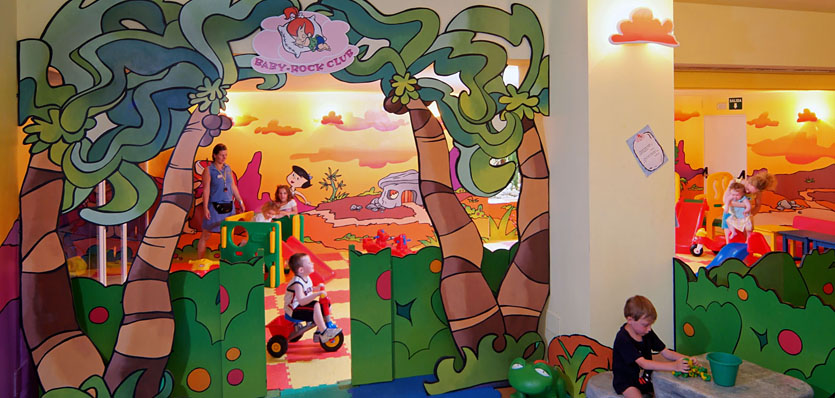 Основной ресторан отеля, с террасой и видом на море (шведский стол), помимо этого есть два кафетерия, два бара, и пиано-бар. Один из баров – «Бургер-бар», оформлен в стиле мультфильма «Флинстоуны», безусловно, этот бар будет излюбленным местом ваших детей. Второй бар – «Снэк-бар», расположен прямо у бассейна.