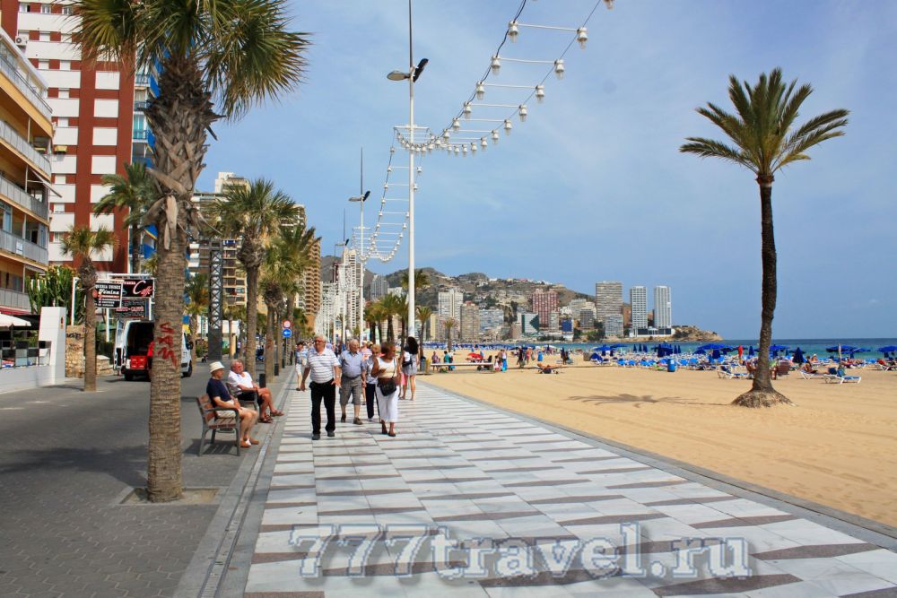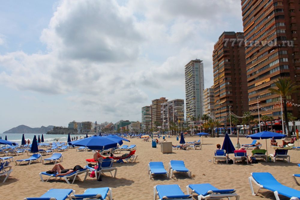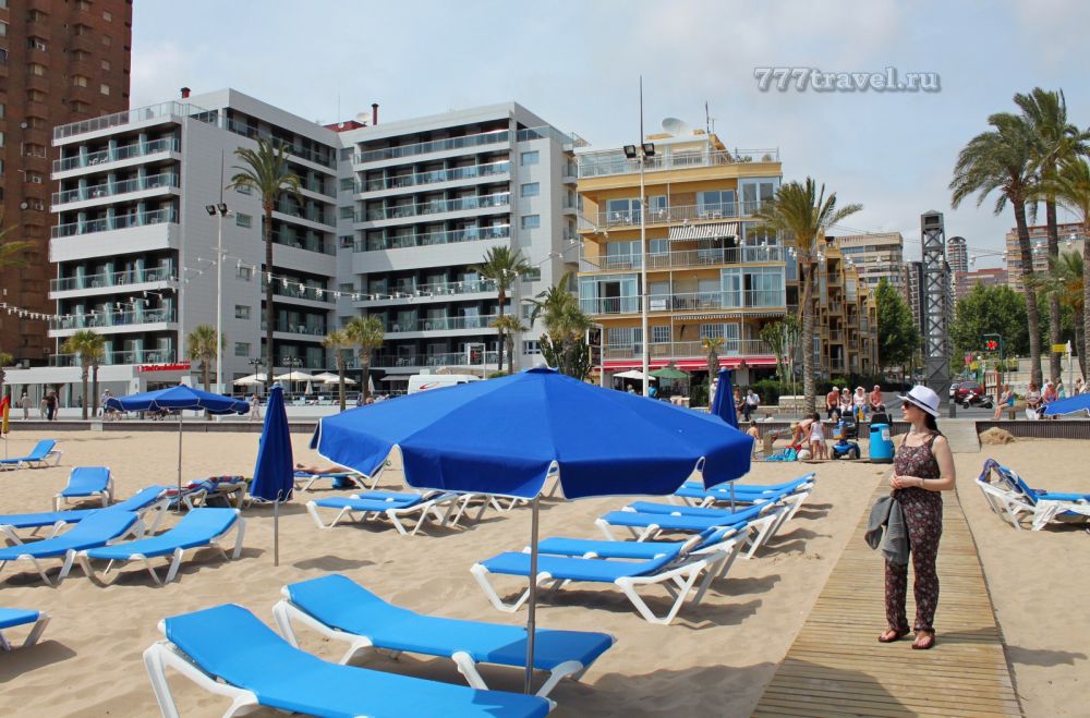 Пляж Леванте в 20ти метрах от отеля Costa Blanca, песчаный, зонтики, лежаки за отдельную плату.