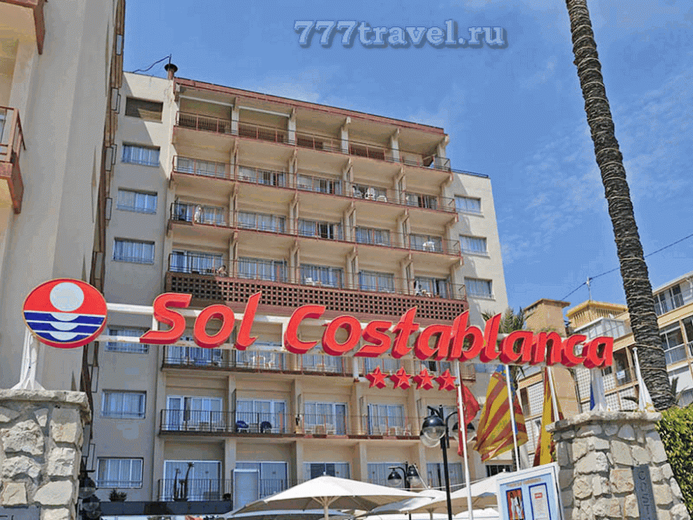 У отеля Sol Costablanca 4* редкое для Бенидорма  расположение на первой береговой линии, когда пляж находится в каких-то 20 метрах через пешеходный променад. Сам отель Sol Costablanca только набирает популярность среди российских туристов, но уже достаточно популярен среди европейцев. Высокий уровень сервиса и  комфорта, шаговая доступность развлекательных заведений, доброжелательный персонал выдвигает отель Costablanca в лидирующие позиции в негласном рейтинге туристов Коста-Бланка Отели. К тому же сам отель предпочитает не почивать на лаврах и регулярно проводит косметические реставрации фасада и номеров. Многие постоянные гости Sol Costablanca с улыбкой отмечают, что цветовая тематика здания отеля периодически преподносит сюрпризы: например до 2007 года отель быль розово-голубой, а после реставрации обновил цвет и стал красно-оранжевым, каким отель станет после очередной реставрации не знает никто.