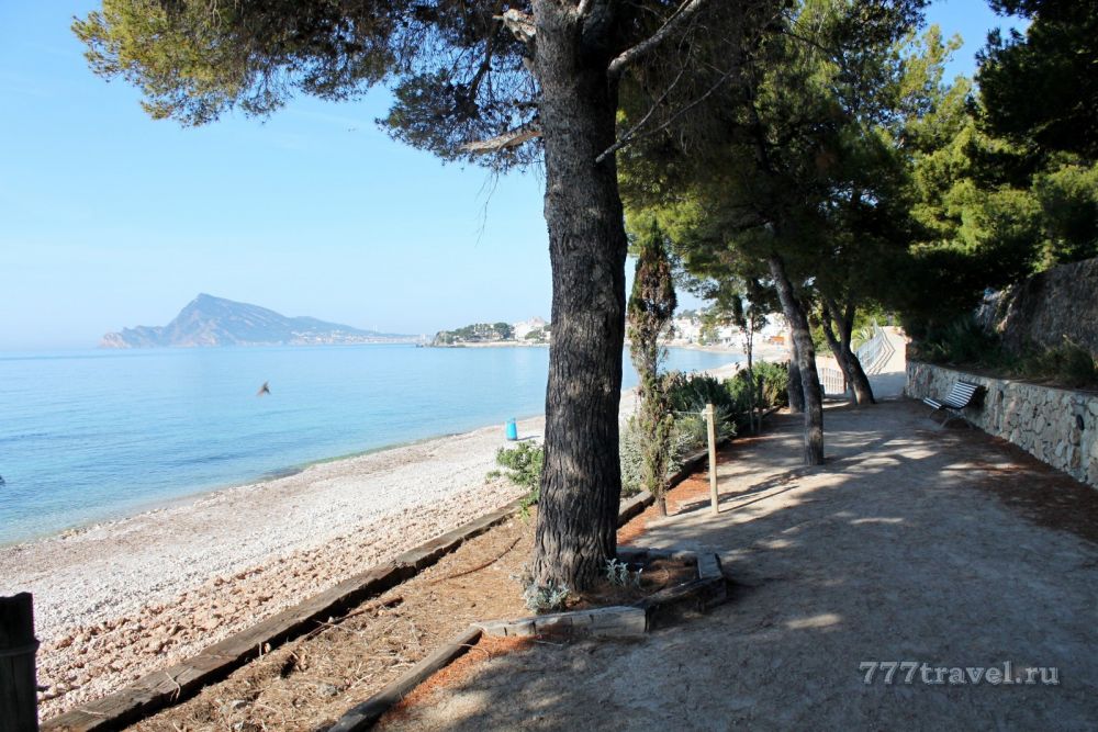 Единственное, чем данный отель похвастаться не может. Через отдельную калитку с электронным замком гости могут спуститься по  ухоженным террасам в  узкую зону пляжа.  Однако, часто гости  даже рады, что данная береговая линия не прельщает многочисленных туристов Коста Бланки, как это бывает у других отелей.