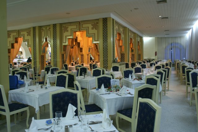 Действует традиционная для сети отелей Marhaba система питания: завтрак — широкий выбор в рамках шведского стола. На ужин также организовывается шведский стол, состоящий в основном из салатов и закусок, в качестве основного меню — 2-3 разных блюда на выбор. Параллельно в отеле Мархаба Бич функционирует ресторан с широким ассортиментом национальных и европейских яств, снэк-бар, особо почитаемое нашими туристами пляжное барбекю и колоритное мавританское кафе. Имеется и неплохой бар около бассейна для любителей поплескаться, попивая из трубочки экзотический коктейль.