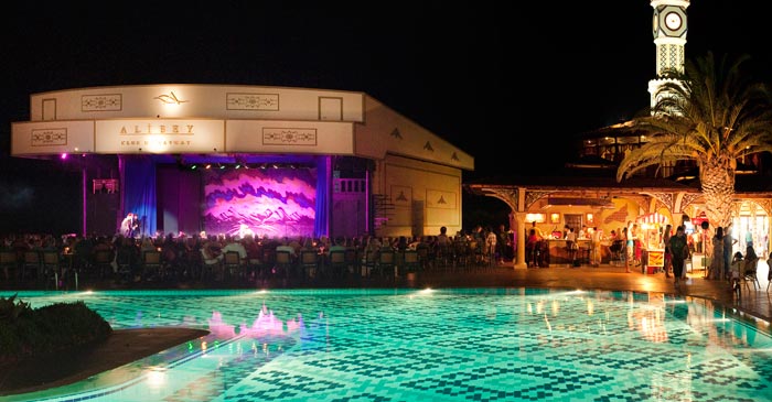 На огромной территории отеля Ali Bey Club Park Manavgat Hv 1 можно найти все, что может интересовать активным отдыхающим. Это, в первую очередь, 62 теннисных корта с покрытием «красный грунт», наибольшее их количество во всей Турции находится именно здесь. Они предназначены как для профессиональных, так и для начинающих игроков. Также есть 3 специальных корта для детей. Среди предоставляемых услуг – дартс, пляжный волейбол, площадка для стрельбы из лука, бочче, настольный теннис, поле для мини-футбола, баскетбольная площадка, сауна, хамам, сауна. За отдельную плату – массаж, услуги СПА-салона, водные виды спорта, освещение кортов, уроки игры в теннис, бильярд, фитнесс-клуб, тренажерный зал, игровые автоматы, аэробика, уроки дайвинга и прочее. По вечерам – дискотека, анимационные программы на русском, турецкая ночь, развлекательные шоу и живая музыка.