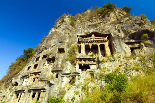 Основательно подкрепившись, стоит прогуляться по узким прохладным улицам самого города. Если вы проводите отдых в отелях Фетхие (Fethiye hotels) впервые, то вам однозначно будут интересны и набережная, и магазинчики, коих здесь несметное количество. В них продается все, что может заинтересовать приезжих – от изделий из кожи до ковров и ламп. Экскурсии по сохранившимся историческим памятникам – прекрасная возможность привезти домой не только материальные, но и духовные приобретения. Ведь только здесь можно увидеть уникальные отпечатки прошлого. Это в первую очередь античный театр и гробница Аминтос, которая считается символом города, а также ликийские надгробия и многие античные селения, расположенные в окрестностях. На горе близ курортного центра стоит замок, который был возведен еще в Средние века. Еще одной достопримечательностью, но уже природного происхождения, является 18-километровый каньон Сакликент. Скалистые стены его местами достигают высоты в 300 метров, что не может не запомниться.